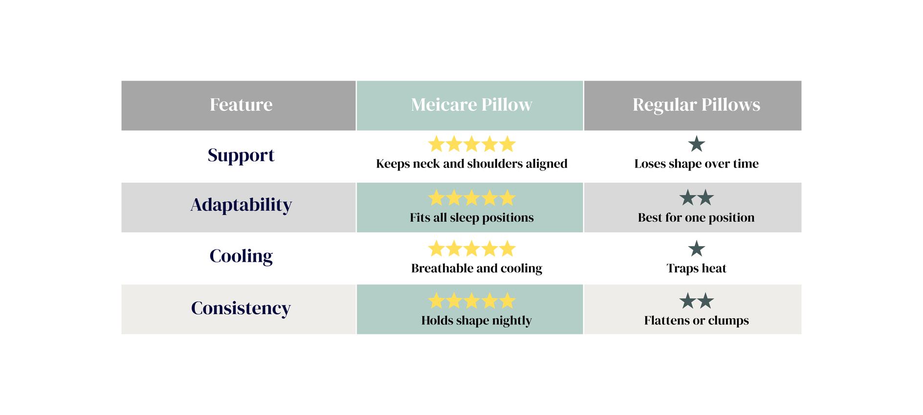 With proper care, Meicare pillows are designed to hold their shape and comfort for several years.