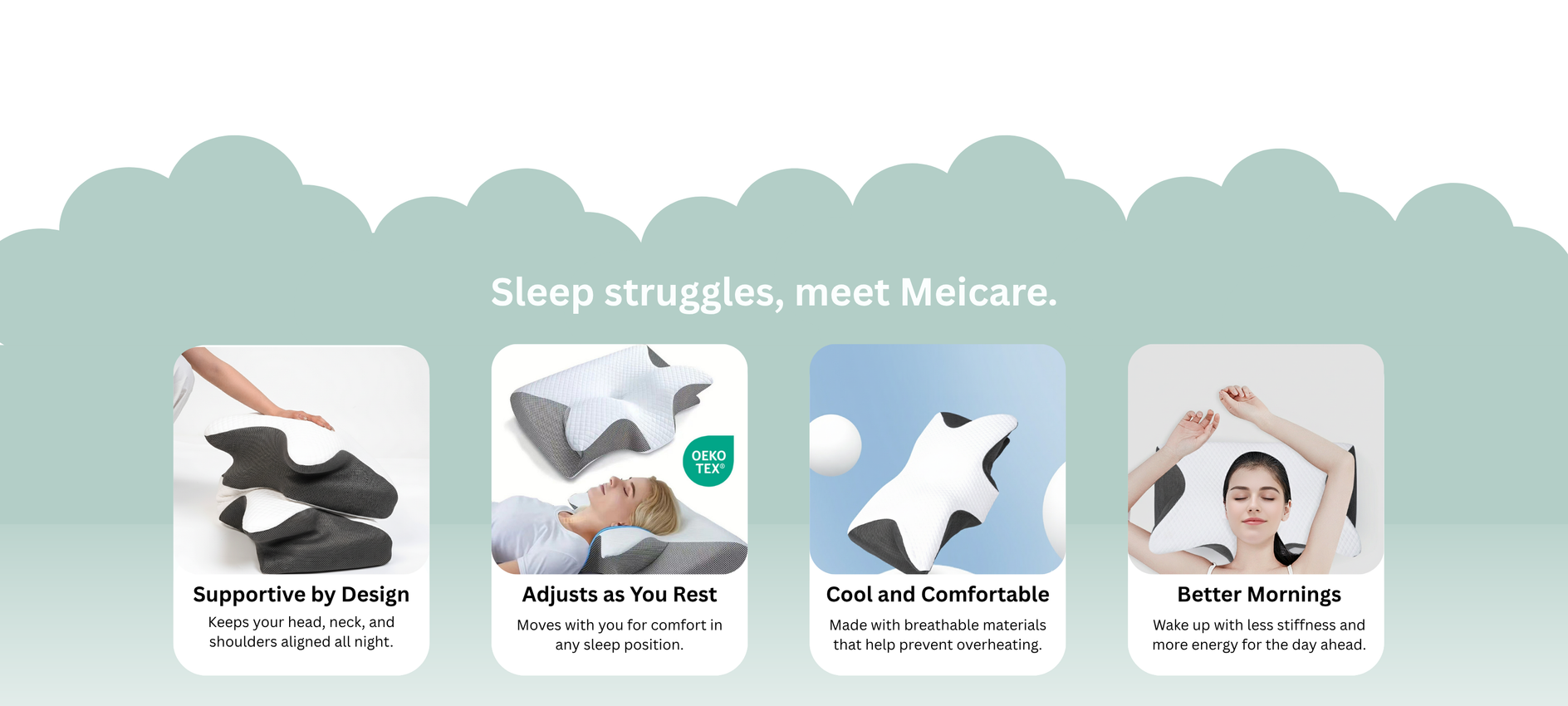 Our Meicare Pillow Collection is made for every sleeper. Designed to support your head and neck in any position, it helps you rest in natural alignment. Breathable materials keep you cool and comfortable — because no two sleepers are the same.